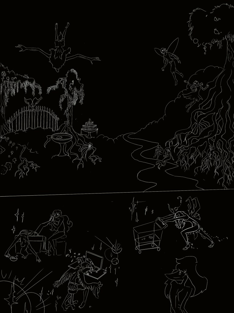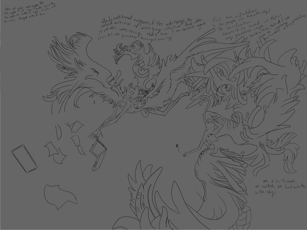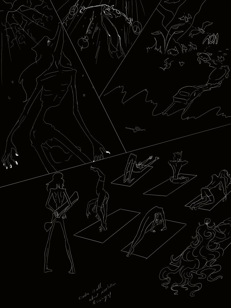 Simba began watching Minerva, she was far from hopeless but just as unsuccessful as somebody who was. She imposed her ideas on everyone around her at the expense of family, at the expense of fitting in. Simba wished he could impose himself on the angels even if only to provoke them. They were content, unchangeable, and any conflict was made artificially for recreation. Why make conflict within? But there was a conflict, and with that simba new he was divided, maybe he made enemies with himself so he’d have some equal to spar with.
