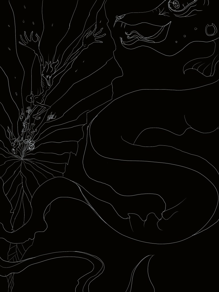 Simba swims up, grabs the monster by his eyes and mouth with his whole body. He swims through the entrails of the eel, the inside even more unnatural than the outside.