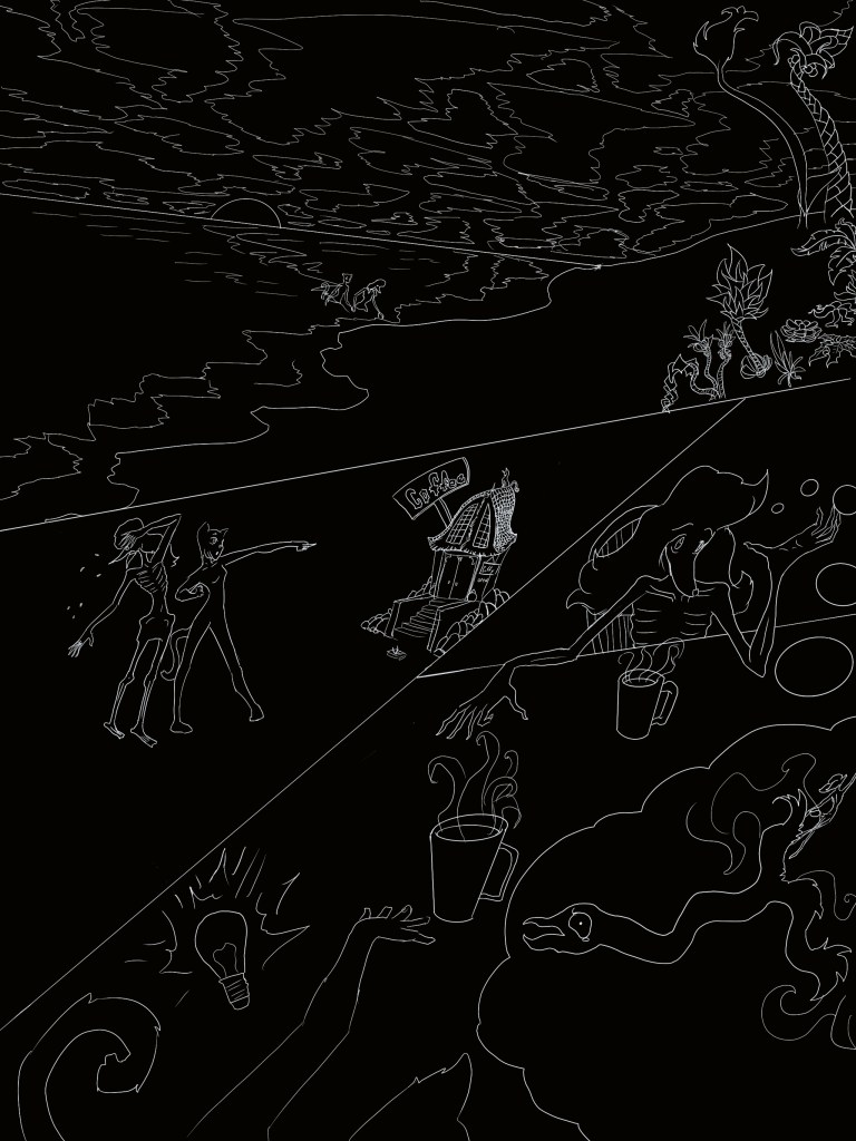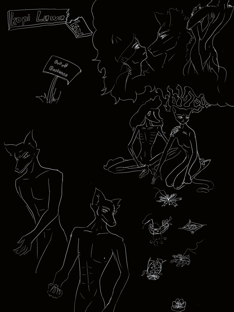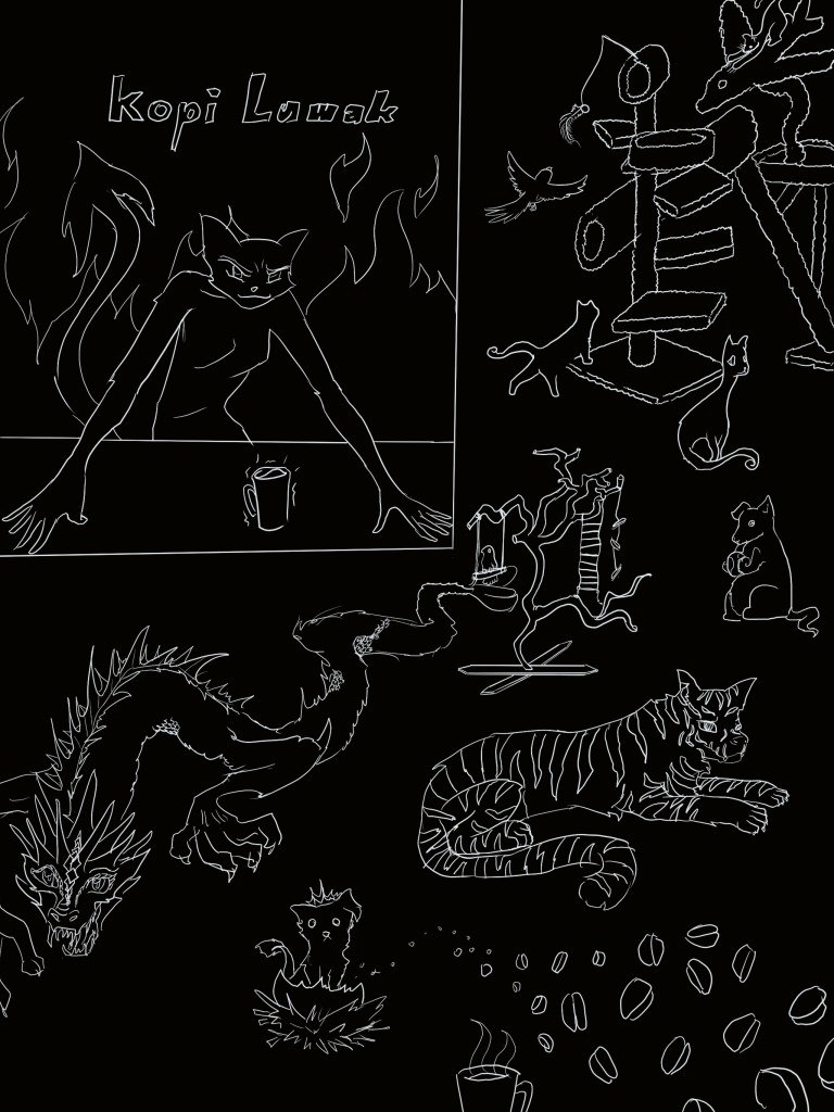 In the tourist inhabited jungle cities in Bali, Minerva came across Kopi Luwak, a coffee made from cherries that had passed through the intestines of a civet. The partially digested coffee had become commercialized, a result of greed and tourists’ desire to leave a not so foreign country with interesting stories. Minerva knew her business would fail, it’d make people laugh or at least provoke people. To some she’d appear just as greedy and ten times more foolish than the locals stuffing caged civets. Secretly to her, so secretly she would not even allow the subtleties of her facial expression to expose to Simba that she liked the idea of partially digested coffee beans brewed her breakfast – that the idea of beans touching blood, veins, stomach acid, the organs, the mucus membranes of the body gave them an allure, an aura so uniquely sick and touching, she could feel it for days.