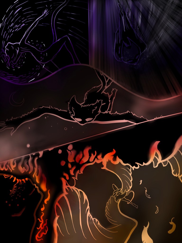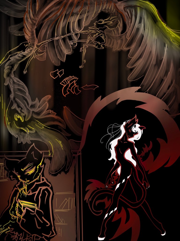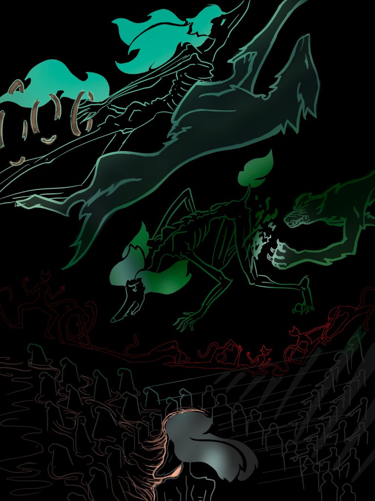 OMG, I was trying to tie this up and it turned corny. One of the champion dogs (Helios) became Minerva’s rival and he was about to miss a jump so bad he injures himself, and she’s torn between feeling regret and sadistic joy.