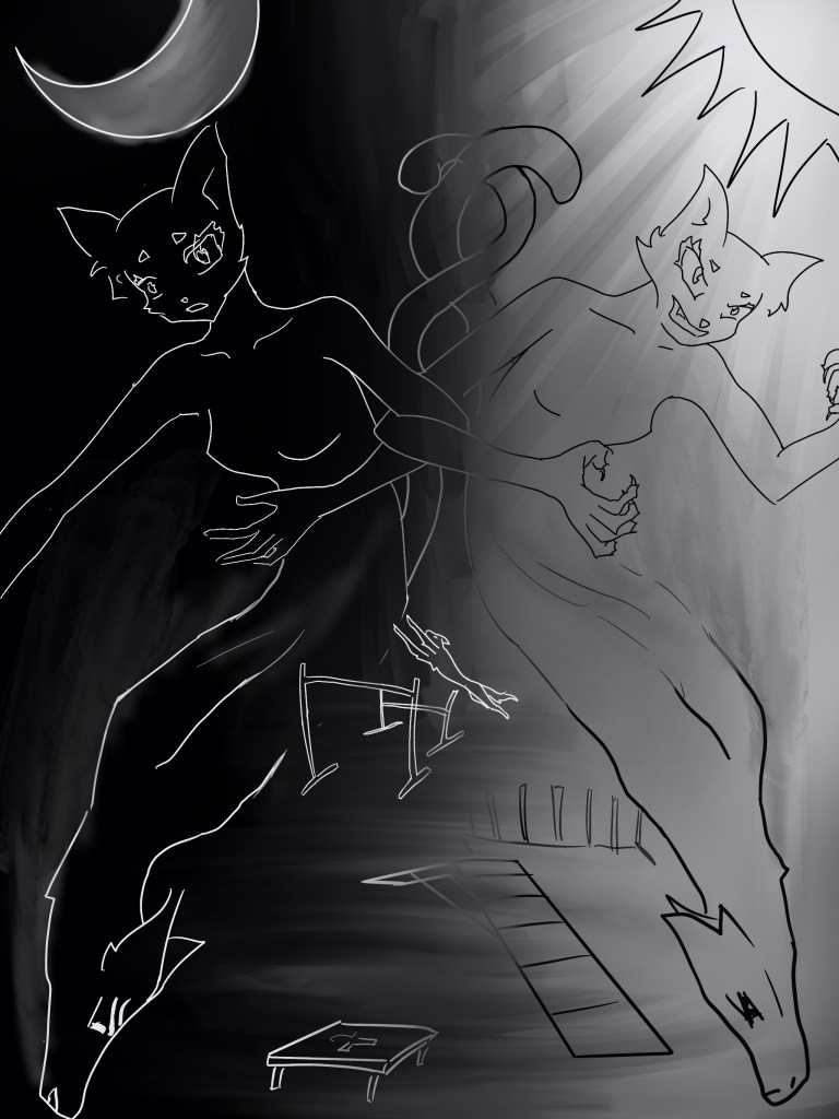 And duh, duality of an individual, yin and yang. IDK why I even bothered drawing that overdone trope but I drew it later in this set also.